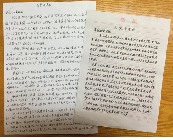【抗击疫情 六院在行动】 来自疫情防控一线的两封入党申请书 -
