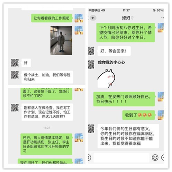 他们每天坚守在各自的“战场”上,只能通过手机微信和家人远程视频、报个平安。他们用责任感撑起身上肩负的使命,将对小家的眷恋收起,默默在各自岗位上全力奉献着自己的力量。在这特殊的日子,相爱、相守,并肩作战;相拥、相知,一起前行。疫情面前,无数个这样的“医护家庭”,为了让更多的家庭能够享受幸福安康,舍小家、为大家,用敬业和热忱谱写出一曲感人的奉献之歌。我们相信:千千万万个家庭的守望相助,必能共克时艰,凝聚起战胜疫情的强大力量。