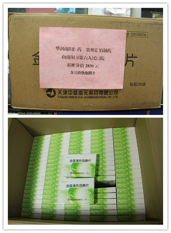 与此同时,华润南阳医药、贵州益佰制药向南阳市第六人民医院捐赠价值2830元金莲清热泡腾片。