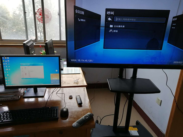 接到通知后,南阳六院信息科迅速做出反应。接到通知后便立即进行预先调试工作,对需要使用的网络设施进行测试调通。2月17日晚上9:40分,硬件设备刚抵达我院,信息科联合后勤科对硬件设备并进行调试,并快速安装需要使用的相关软件。为确保系统能够平稳运行,信息科人员多次进行会议测试,不断沟通处理在测试中遇到的问题。通过不懈努力,远程会诊系统调试任务在次日圆满完成,并顺利通过该系统对隔离病区的医护人员进行了一次“全国新型冠状肺炎医疗救治工作视频培训会”,取得了预期的效果。