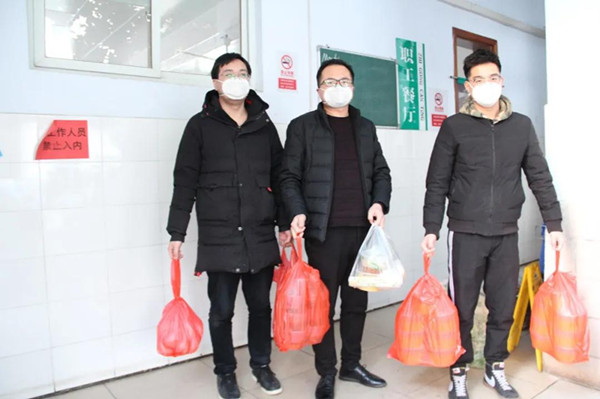 疫情初期,行管后勤人员连夜完成患者床位迁移,在隔离病房三区之间设置物理屏障,为隔离病区的医务人员安装热水器、微波炉等生活电器,为确保一线医务人员战“疫”有力量,我院30余名行管后勤人员组建了医疗后勤保障队,下设消杀组、餐饮供应保障组、疫情监测上报组、通讯报道组、车辆保障组、办公室值班组等6个工作组,为一线医务人员解决后顾之忧。根据医务人员工作时间弹性送餐,为保证营养全面,送牛奶、水果等。